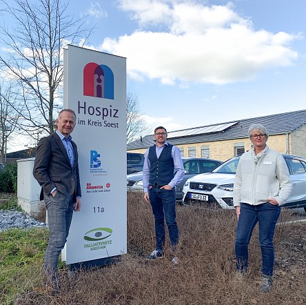Im Bild: Ewald Prünte vom Rotary-Club (links) mit Sebastian Thieman und Angelika Köster vom Christlichen Hospiz Soest.