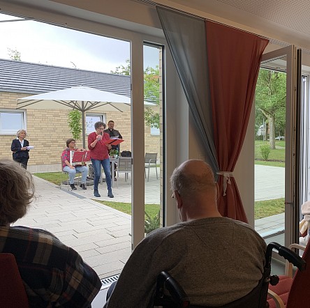 Seit Corona sind Begegnungen oft nur auf Distanz möglich – auch im Christlichen Hospiz Soest. Die Seelsorgerinnen und Seelsorger des Pastoralen Raums Soest haben sich deshalb etwas ganz Besonderes ausgedacht: Vor den geöffneten Türen und Fenstern des Hospizes packte ein Team um Pfarrer Uwe van Raay am Abend des 1. Juli Akkordeon, Notenblätter und Märchenbücher aus und schenkte den Gästen dreißig Minuten Musik und Poesie.